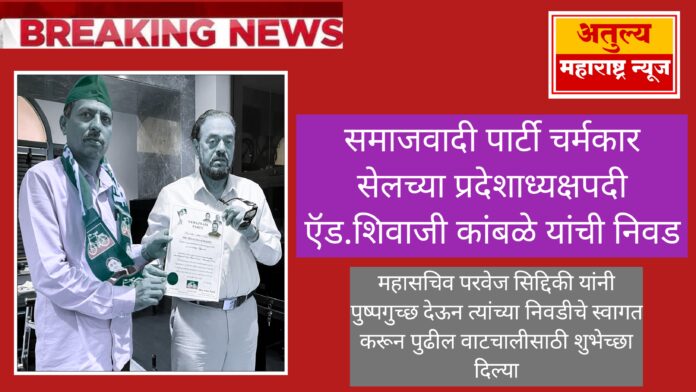 समाजवादी पार्टी चर्मकार सेलच्या प्रदेशाध्यक्षपदी ऍड.शिवाजी कांबळे यांची निवड