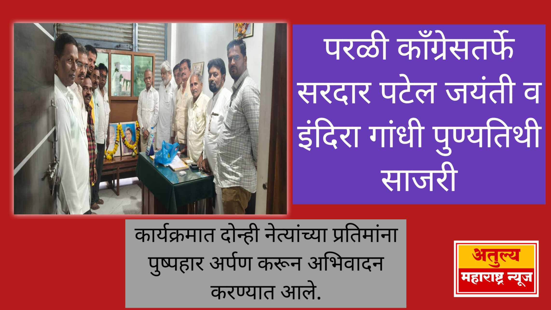 - परळी काँग्रेसतर्फे सरदार पटेल जयंती व इंदिरा गांधी पुण्यतिथी साजरी